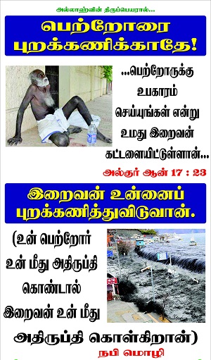 மற்றவர்களாக இருப்பின் சதாவும், சனியனே! தொலைந்து போ! என்று திட்டித் தீர்ப்பார்கள்; சபித்துத் தள்ளுவார்கள். படுக்கையில் கிடக்கும் பெற்றோரைப் பாரமாக நினைப்பார்கள். பளுவாகவும் நசுக்க முடியாத ஒரு புழுவாகவும் கருதுவார்கள்.